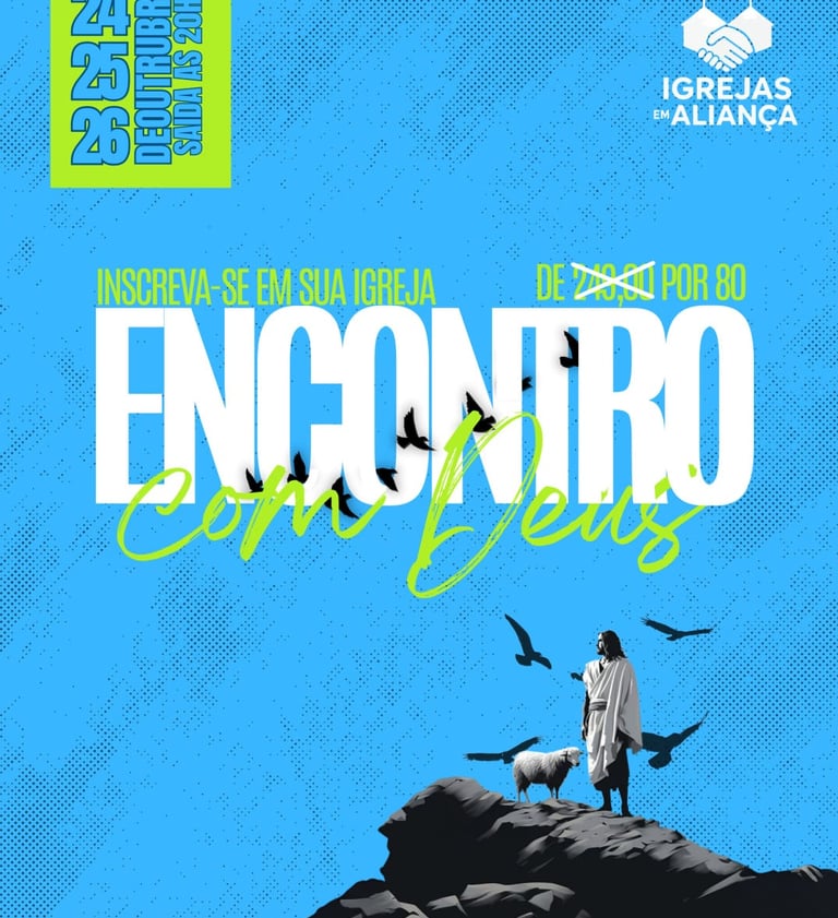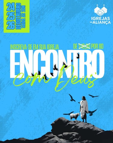 De 24 a 26 de Outubro, você terá a oportunidade de mergulhar em uma experiência que vai muito além de um evento. O Encontro com Deus é um chamado para um novo começo, onde o vazio dá lugar à plenitude.